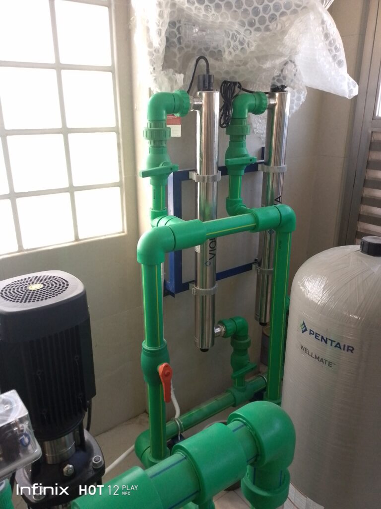 - Jasa Pasang Ultraviolet, sistem ultra violet mempunyai sinar yang sangat terang. Tingkat cahayanya air yang mengalir pada housing yang tersinar oleh UV dapat membunuh virus, bakteri dan protozoa. Dengan begitu UV berperan penting untuk menetralisir air minum agar terhindar dari bakteri.